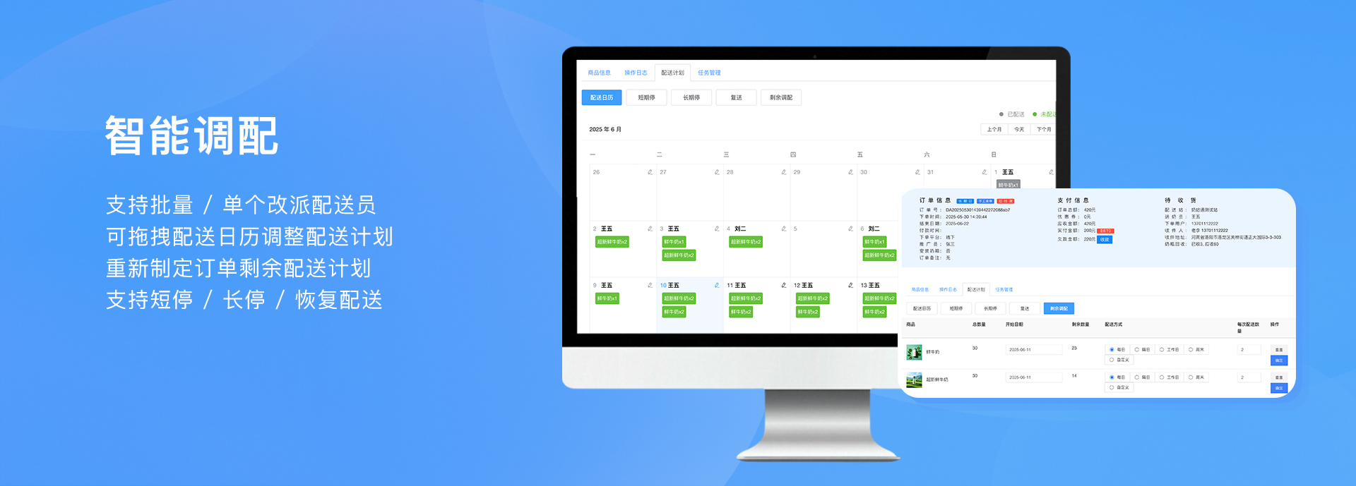 • 一鍵暫停/恢復配送、智能調配